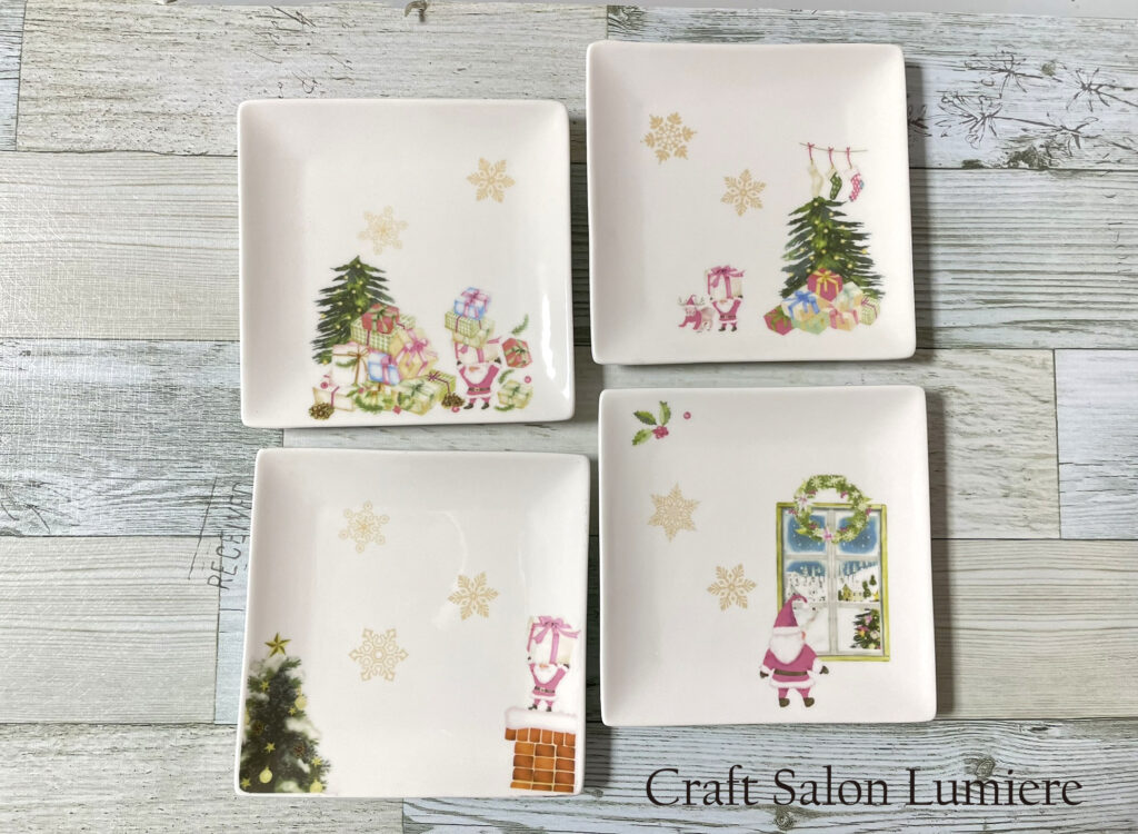 1皿ずつ絵柄が違い、どれも可愛い。。。先日お渡し出来て、プレゼントした皆様に喜んで頂けて、とても嬉しいです。