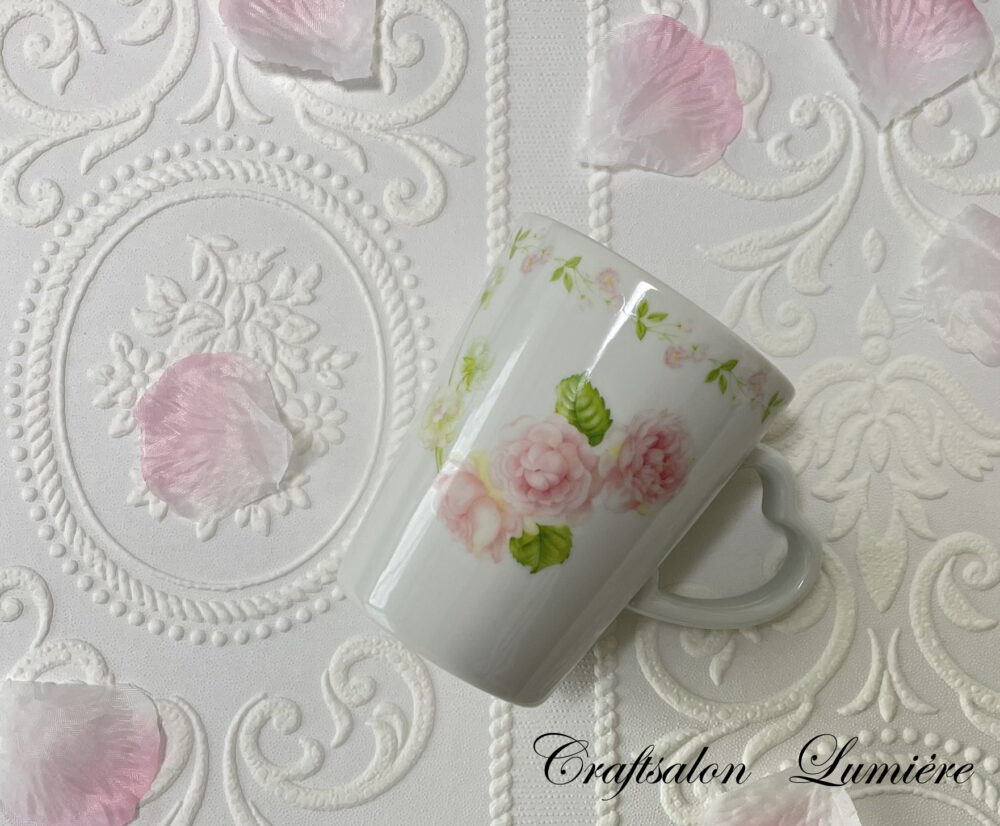優しいオールドローズの転写紙を使用されて、素敵なマグカップを作成されました。