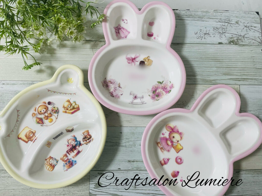 小さなお子様がお使いになる、可愛い物をお願いします。とご希望を頂きましたので、可愛いうさぎさん&くまさんプレートをご提案させて頂きました。